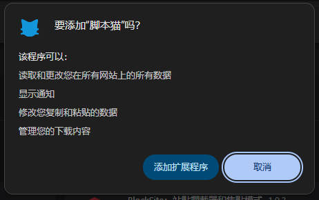 4、等待片刻后,扩展管理界面就会出现弹窗,点击添加扩展程序后便安装完成了。