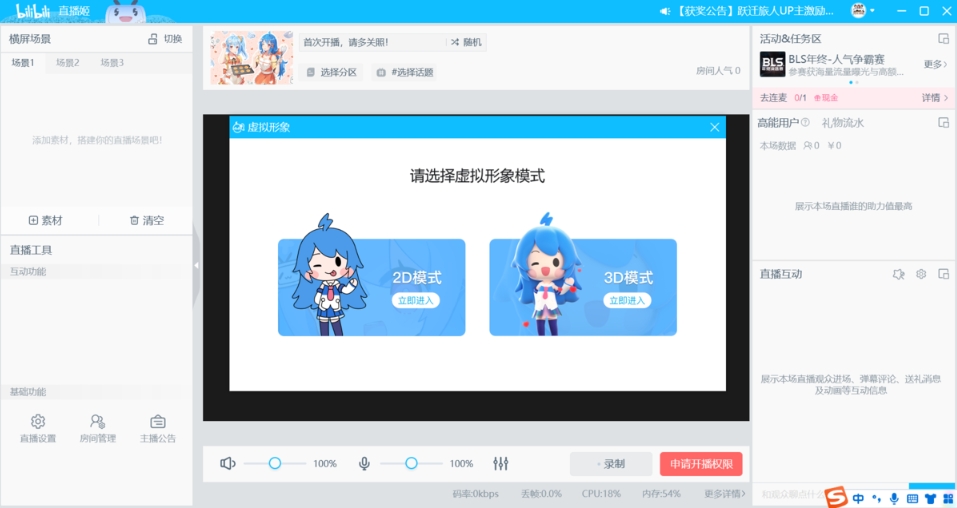 1、安装后启动软件,使用B站账号扫码登录并授权直播权限。