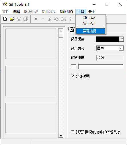 2、该软件提供屏幕捕捉功能,能录制屏幕指定区域的动态内容并生成GIF,还支持GIF与AVI格式间的相互转换,以及多种图像特效处理。