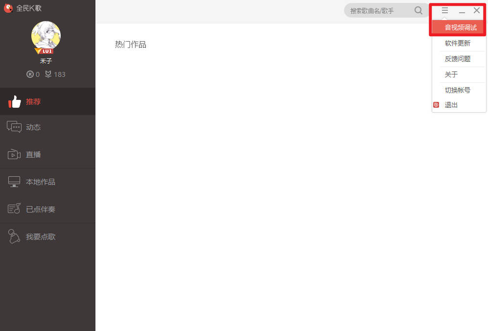 1、打开全民k歌官方电脑版并登录后,在主界面上选择你需要的功能,如点歌、调音、合唱等。