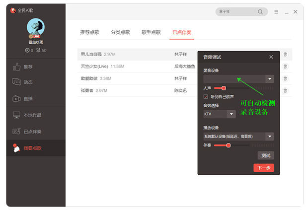 4、首次使用需进行设备调试,包括麦克风和播放设备测试,确保最佳音效。