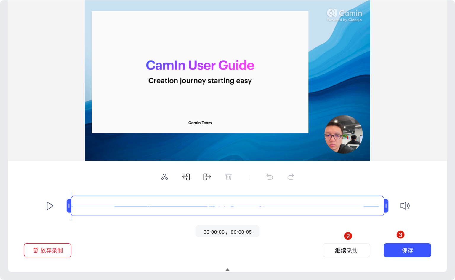 2、多段录制:支持暂停后继续录制,出错无需重来,大幅提升了制作效率。