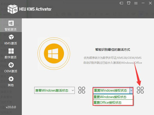 v63.2.0版本 1.增加对Windows评估版的支持(重置90天)。 2.修复智能激活误启动KMS服务器的bug。