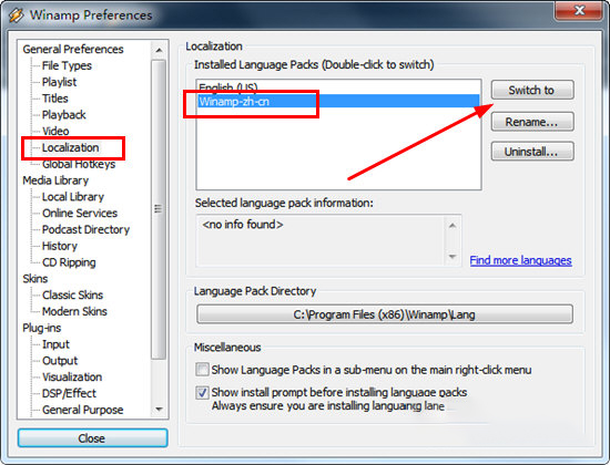 2、然后在其中的Localization当中选择ZH-CN即可切换。