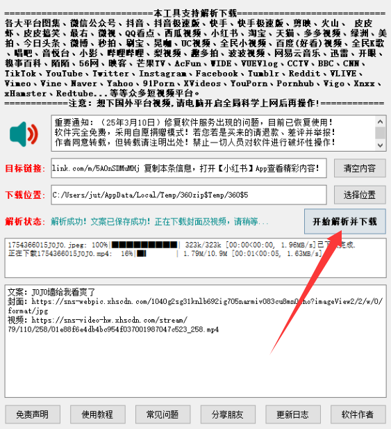 3、之后点击解析并下载就可以了。