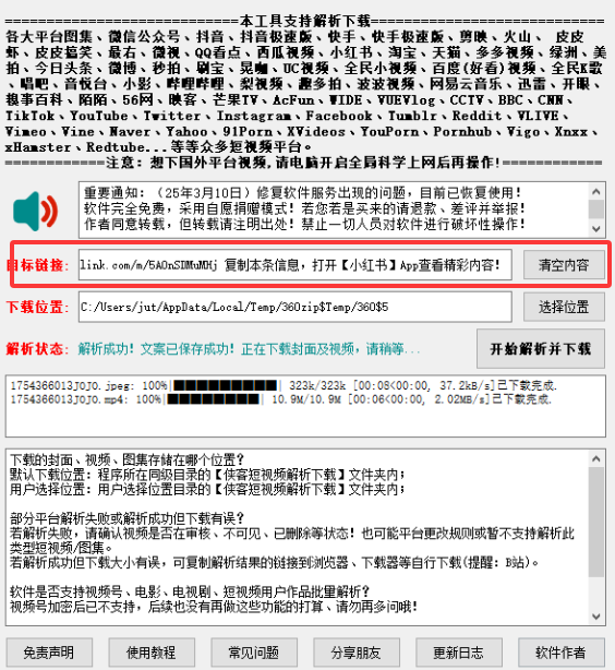 侠客短视频解析最新版本是一款专门用于进行视频下载去水印的优质工具,软件当中可以将多种平台当中的短视频来进行下载,这样就能够选择自己需要的视频来点击解析到电脑本地当中进行观看,还是非常方便的。