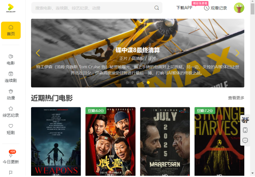 1、打开软件,进入首页,在这里可以看到对应的热门影视内容。