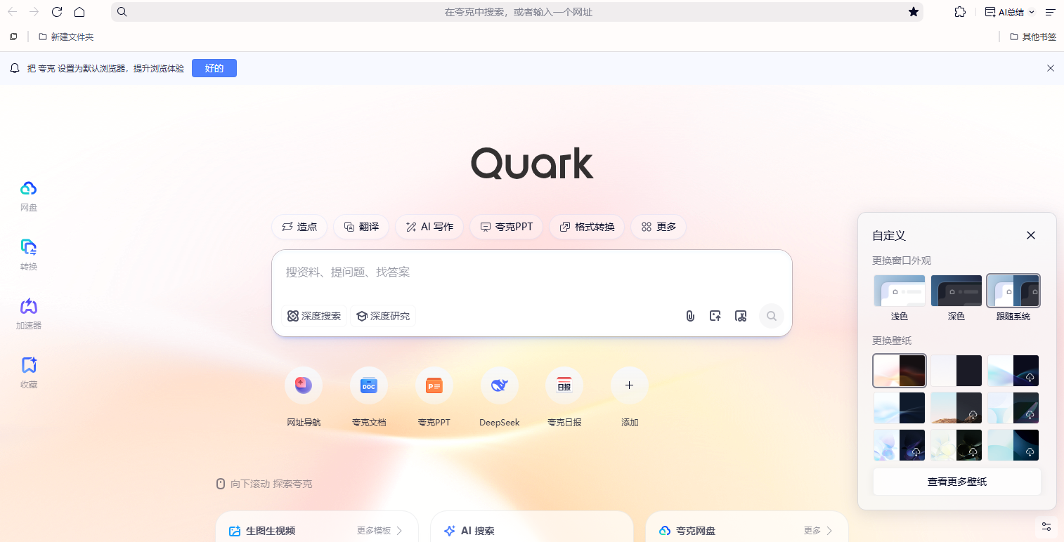 夸克浏览器老版本是一款深受用户喜欢的浏览器工具,这款软件当中提供了非常先进的浏览功能以及AI助手能够帮助用户来进行在线浏览,进入到软件当中之后就能够实现近距离的网络互动加载,了解到其中的内容了。