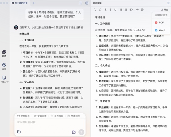 2、新建文档时选择智能模板,系统自动填充框架,支持自定义编辑与样式调整,提升创作效率。