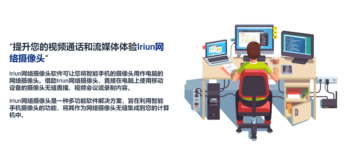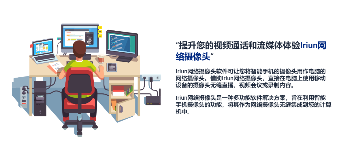 Iriun Webcam汉化版是一个很好用的黑科技软件,它可以把手机摄像头当做电脑摄像头来使用,支持无线网或者数据线连接,这样大家就多了一个摄像头,非常适合直播时候用,开启多个摄像头可以实现画中画效果,呈现更精彩的直播表演。