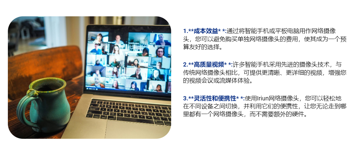 1、4K超清支持:根据手机性能来开启超高分辨率,清晰度不输电脑摄像头。