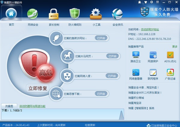 瑞星个人防火墙免费版是一款专门为个人打造的网络安全工具,该软件的防护功能十分强大,能轻松查杀病毒和抵御网络攻击。而且软件还会在后台实时监控电脑的状态,在没有网络的环境中也能使用软件,全面保护数据安全。