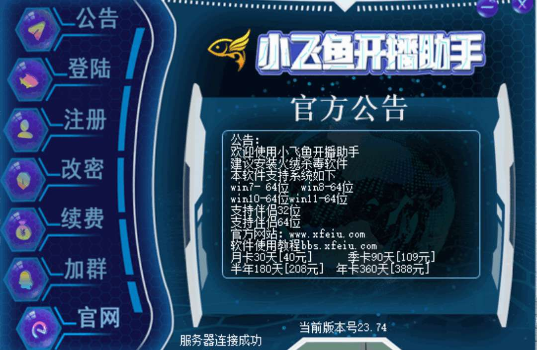 小飞鱼开播助手电脑版是一款专业的直播推流软件,它能够针对不同电脑配置调整推流参数以优化直播效果,让低配置电脑也能流畅开播,高配置电脑则可呈现更佳画质,该软件稳定且持续更新,适用于各大直播平台和主播,下面一起来看看吧。