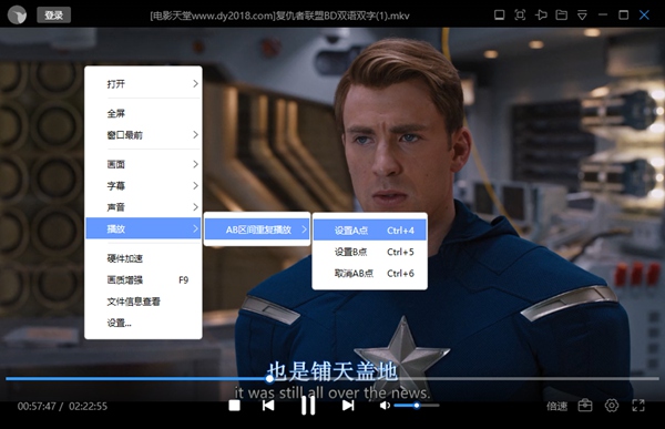 3、如果要重复播放某个片段的话,就点击播放-AB区间播放,这只AB即可。