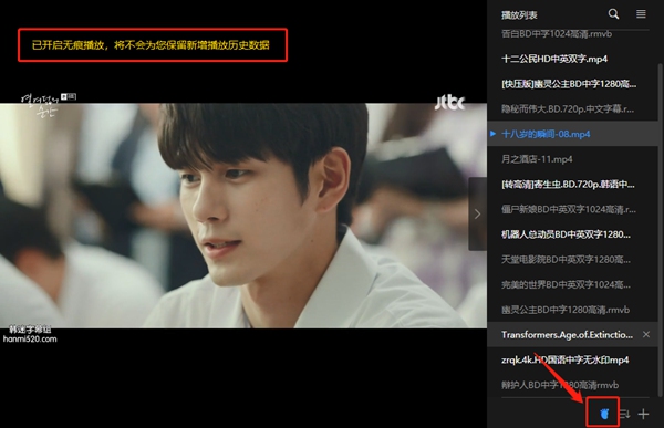 1、点击右下角的脚丫子图标,即可开启无痕播放。
