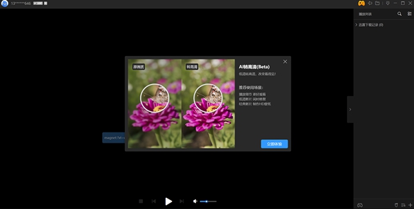 1、打开迅雷播放器电脑版软件,登录账号后进入首页找到视频转高清的功能;