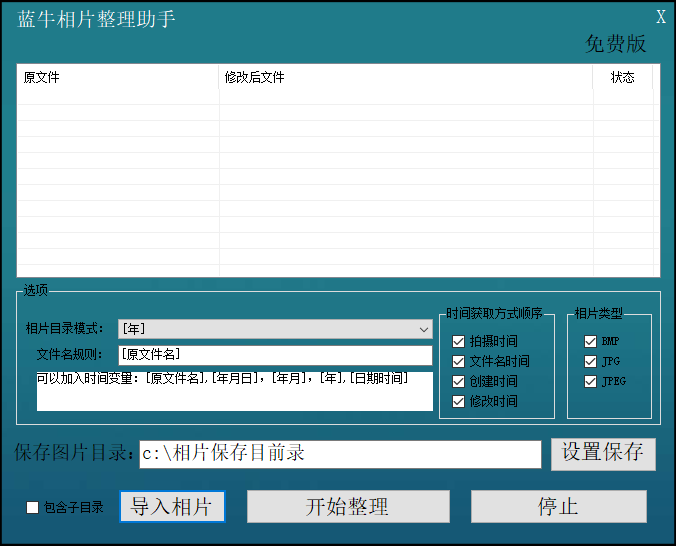 1、蓝牛相片整理助手是一款功能简单实用的照片整理工具,它能够帮助用户一键批量整理电脑中的相片,支持按拍摄时间、创建时间以及修改时间等多种方式进行分类,有效提升照片管理的效率。