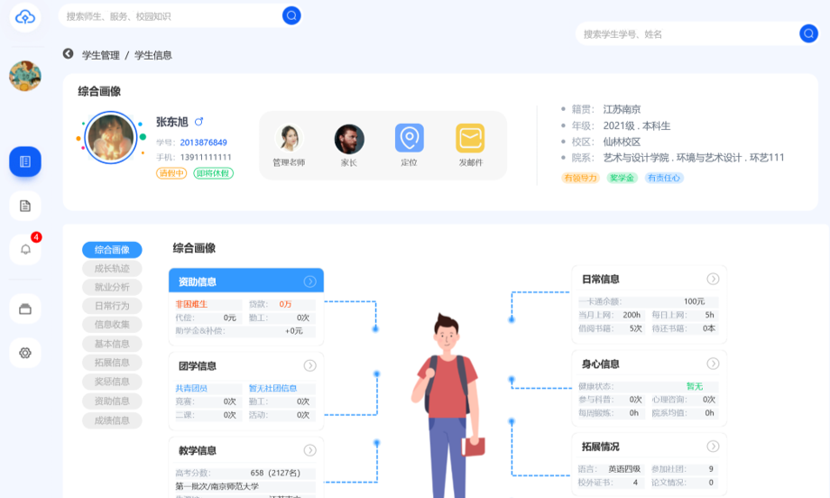 能够揉合各种数据来源,为每位学生建立包含多方面信息的个人档案,形成学生百科。