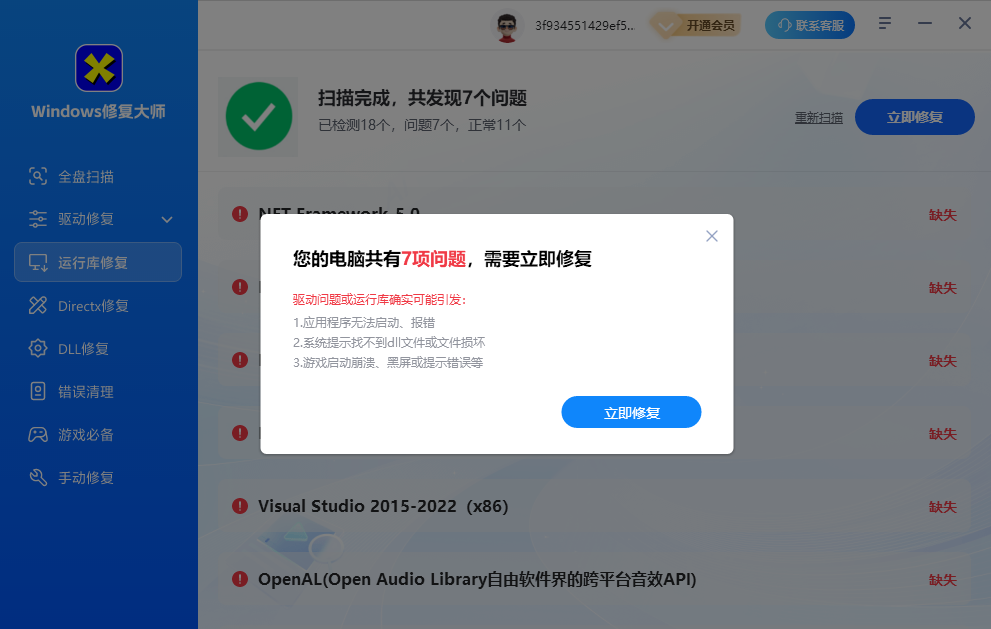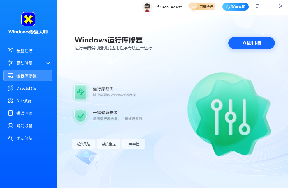 1、进入软件之后点击左边的运行库修复。