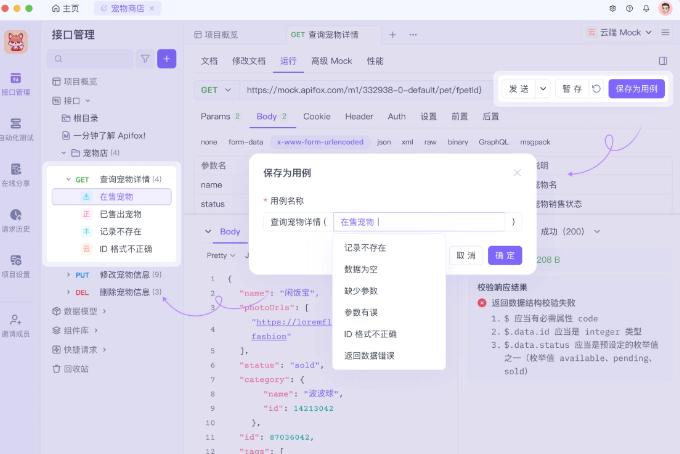 2、可视化API设计:支持拖拽创建接口,直观看到请求/响应参数。