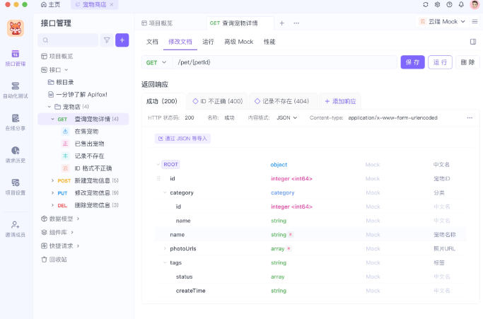 Apifox在线通过一套系统解决了API全生命周期问题,在这里就可以直接进行开发、测试、调试一条龙程序,无需来回切换多款软件,让数据全程在这里流转复用,这样就可以避免数据出错,缩短开发周期,大幅减少运维成本。