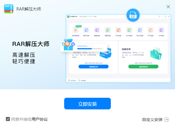 rar解压大师zip解压缩是一款专业文件解压缩工具软件,它支持对RAR、ZIP、7Z、TAR等几十种常见压缩格式进行解压和压缩操作,并集成了文件管理、加密压缩、分卷处理等实用功能,旨在为用户提供高效便捷的压缩文件处理方案,感兴趣的话快来下载吧。