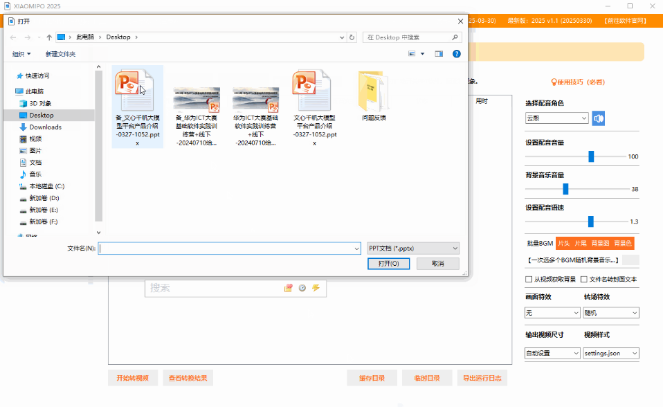 小米坡ppt转mp4视频工具免费版是一个功能强大的转换功能,将无声的PPT一键转换为声情并茂的视频,PPT内所有的内容都可以转换,当然也可以手动选择,挑选重点内容去生成视频,再挑选合适的声音,为视频制作好旁白,带给大家震撼的视听体验。