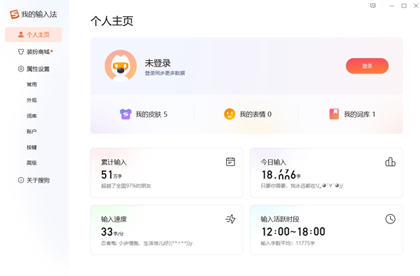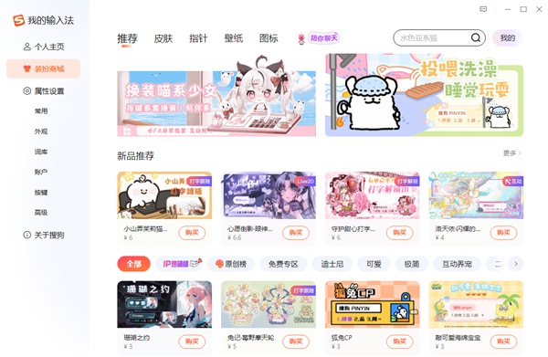 1、进入搜狗拼音输入法最新版本软件之后先进入设置的装扮商城。