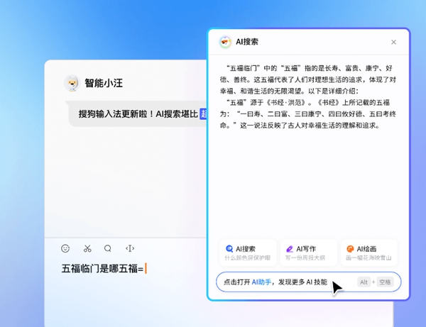 1、输入法自带AI功能,可以点击AI搜索进行询问。