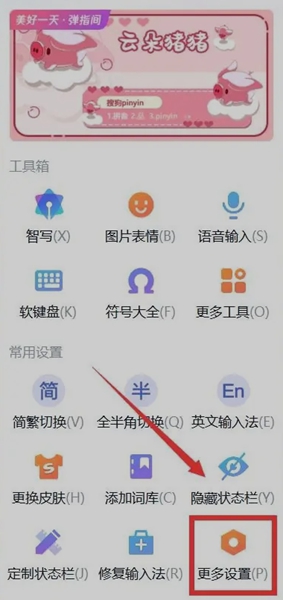 1、首先打开搜狗拼音输入法最新版本设置,点击如图所示的【更多设置】。