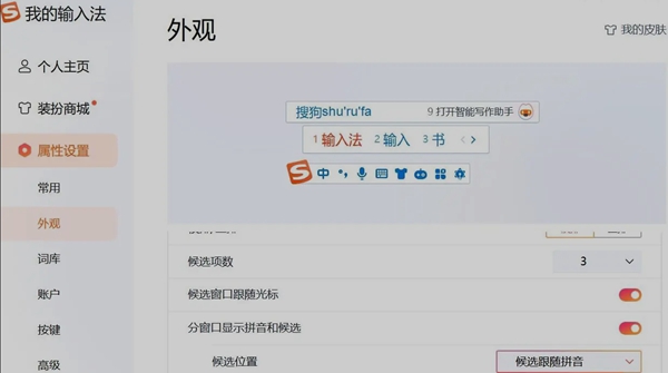 3、然后我们点击【分窗口显示拼音和候选】右边的按钮。