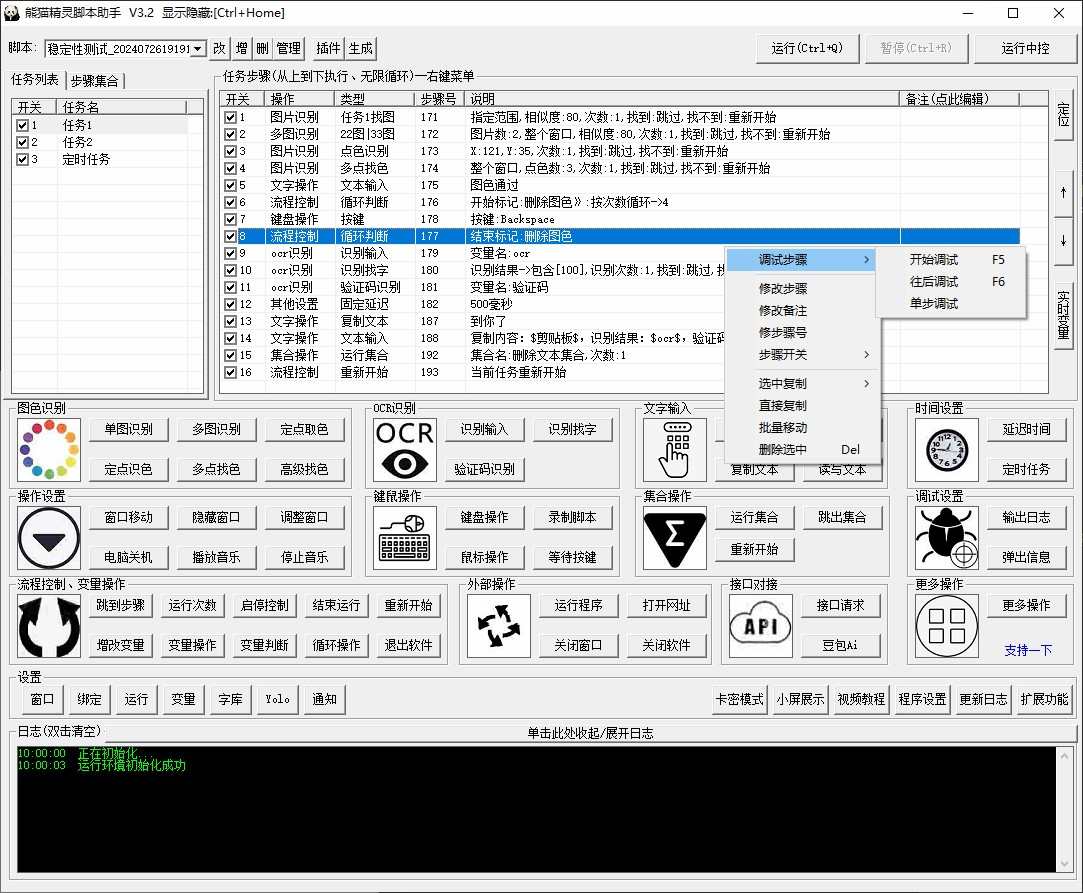 支持自动化的全称进行运行,在软件的主界面当中就能够根据需求来依次的进行加载。