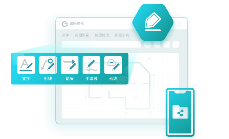 2、支持文字、引线、箭头、手绘线等多种批注。