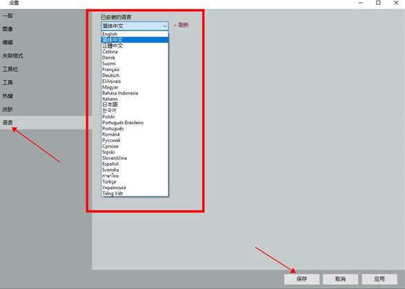 2、接着选择语言,随后就可以对语言设置为简体中文,将其进行保存即可。