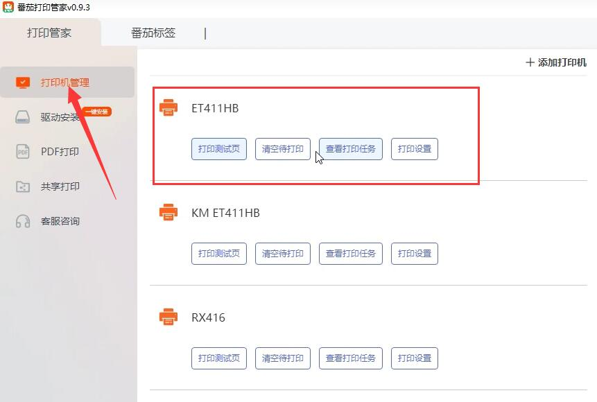 提供打印机可视化管理功能,可在线进行打印自检、任务管理和清空等操作。