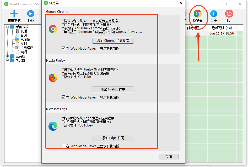 配备专属浏览器插件,可与主流浏览器深度兼容,自动捕捉网页中的下载链接并接管下载流程。