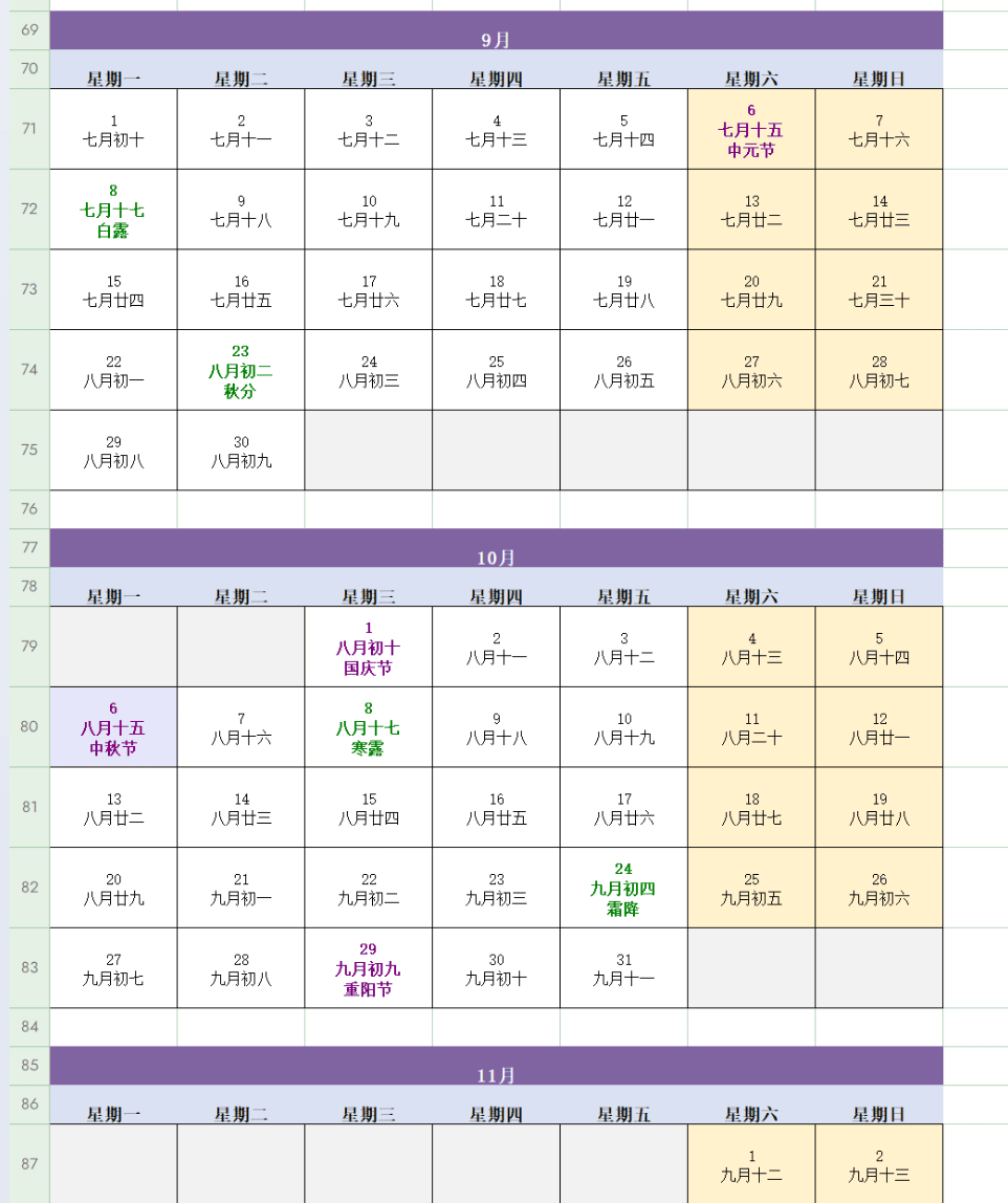 3、法定节假日智能标注:它会自动识别并高亮显示国家法定假日和调休安排。