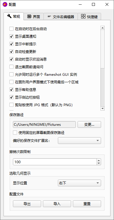 1、进入配置页面,点击常规,设置好截图的保存位置。