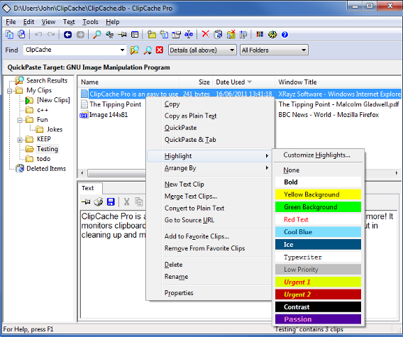 clipcache pro是一款专门用来查看剪贴板内容的工具,该软件对电脑自带的剪贴板进行了增强,会实时将当前复制的内容显示出来。软件兼容的格式非常多,无论是图片还是文本都能保存在剪贴板上,方便后续查看使用。