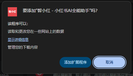 4、等待片刻后,扩展管理界面就会出现弹窗,点击添加扩展程序后便安装完成了。
