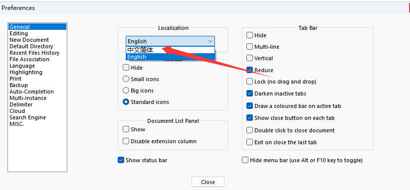 3、找到Localization栏目,下拉选择简体中文即可。