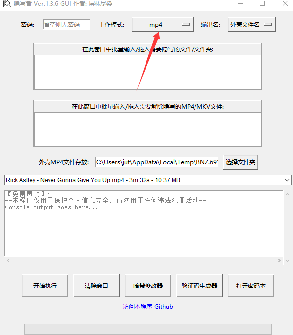 软件当中提供了多种不同的模式可以选择,都能够进行相关文件的隐写。