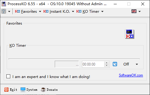 ProcessKO是一款免费且功能强大的进程强制关闭工具软件,它能够批量定时或立即结束运行中的进程,甚至可以强行终止Windows任务管理器无法关闭的程序或进程,有效应对软件无响应或危险进程,软件体积小巧,建议以管理员身份运行以确保功能完整,感兴趣的话快来下载吧。