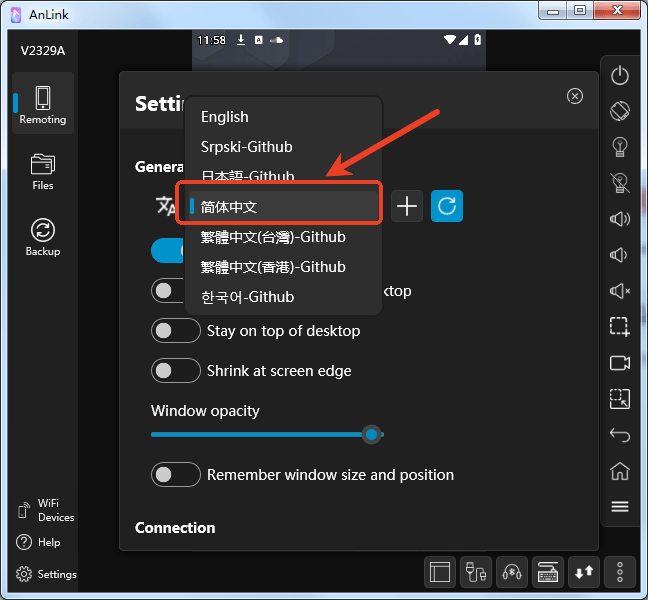 1、电脑手机同连WiFi,启动Anlink工具,扫码或输入码快速连接设备。
