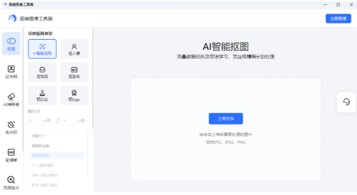 1、打开软件,进入到抠图的界面,上传需要抠图的文件。
