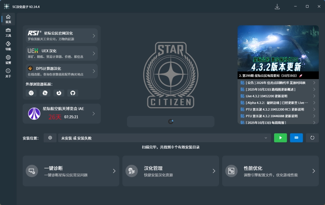 1、点击首页,它不仅可以对游戏本体进行汉化,官网、辅助工具都会一并汉化。