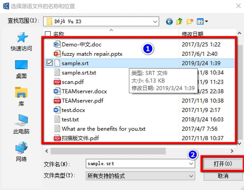 2、再次选择添加文件-选择源语文件的名称和位置;