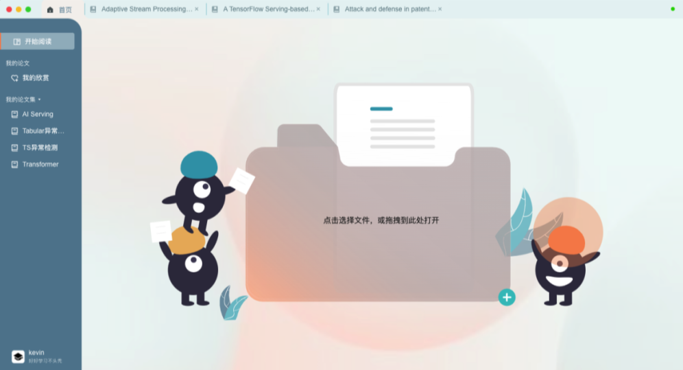 1、点击选择文件,或者拖拽到窗口中,即可开始阅读文献。