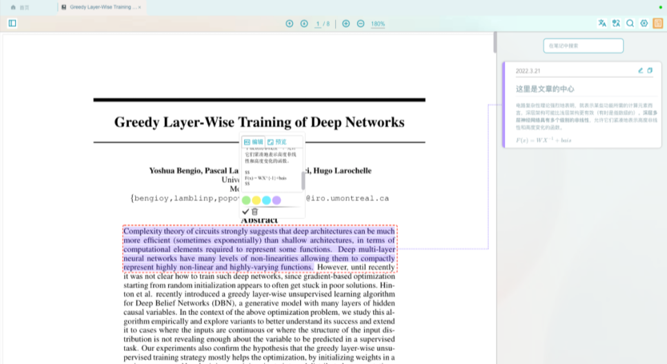 3、选中某个文章段落,可以一键翻译,也可以添加注释。