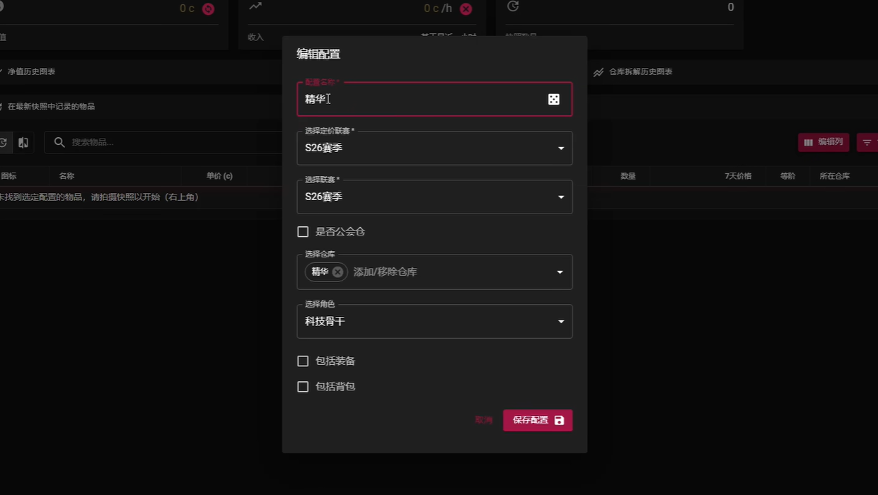 3、通过编辑配置可以了解指定赛季以及角色的相关物价。
